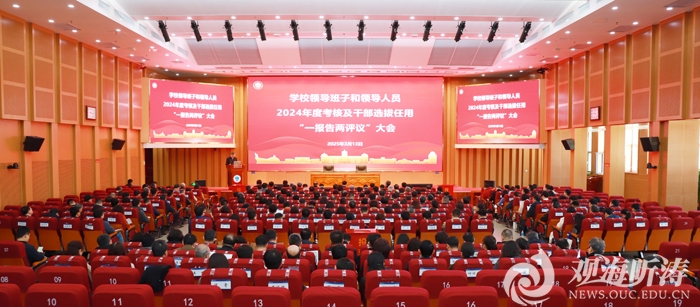 3月13日,中国海洋大学召开学校领导班子和领导人员2024年度考核及干部选拔任用“一报告两评议”大会。党委书记田辉代表学校领导班子作2024年度述职报告,党委常务副书记张静代表学校党委作2024年度干部选拔任用工作报告。党委副书记、校长张峻峰主持大会。