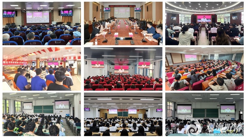 省级指导组有关同志,学校领导班子成员、党委常委、校长助理,机关党员和师生党员代表等400余人在崂山校区海洋科技楼国际报告厅参加学习,其他师生党员在各分会场参训。集中大课结束后,全校各党支部围绕学习主题,陆续组织开展深入交流研讨,将理论学习效果再深化、再夯实,切实把学习成效转化为工作动力和发展实效。