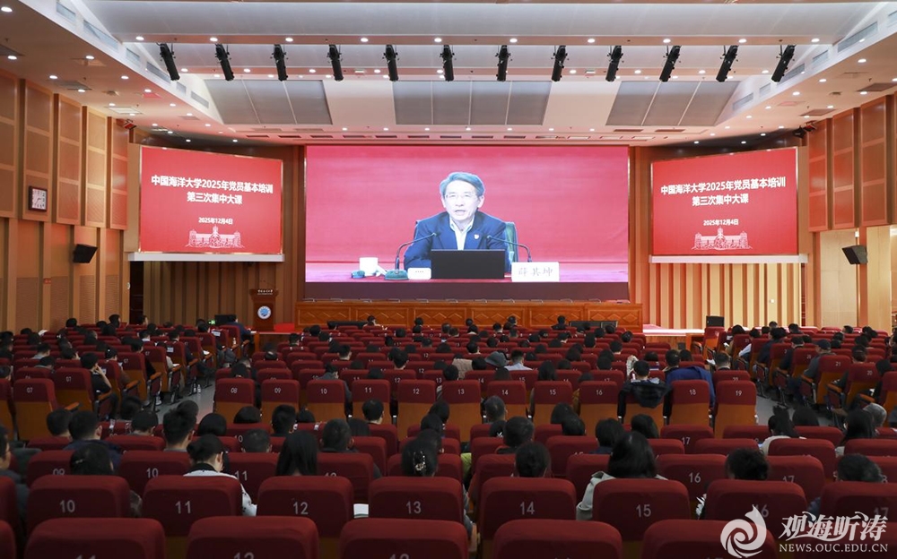12月4日,中国海洋大学举办党员基本培训2025年第三次集中大课,集体学习南方科技大学校长、中国科学院院士薛其坤同志讲授的辅导报告。学校党委常务副书记张静主持并讲话,山东省委教育工委学校组织处有关负责同志到会指导。全校干部师生党员在134个会场参训。